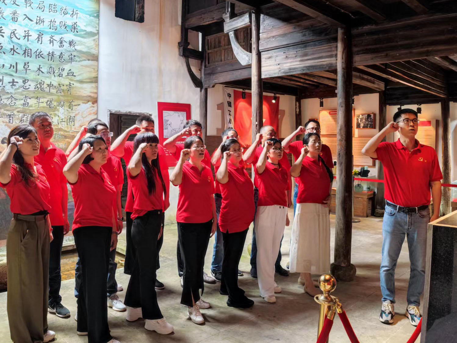 ? ? 金廈黨總支的黨員們?cè)邳h支部書記傅融的帶領(lǐng)下參觀了銀坑村粟裕將軍紀(jì)念館,感悟革命初心,重溫入黨誓詞。